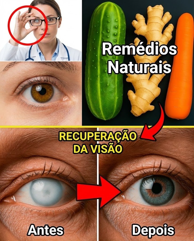 Horas intermináveis diante de telas digitais, o stress constante da vida moderna e o avanço inevitável do tempo estão castigando silenciosamente um dos nossos sentidos mais preciosos: a visão. Se você tem lutado contra olhos secos, cansados ou visão embaçada, chegou a hora de diminuir a luz artificial e abraçar soluções naturais poderosas que resistiram ao teste do tempo. Esqueça por um momento gotas caras e rotinas complexas — aqui está um elixir simples e eficaz, extraído diretamente da natureza: a combinação de Pepino, Gengibre e Cenoura. Essa mistura não só acalma olhos cansados, mas ajuda a restaurar a clareza, combater os efeitos do envelhecimento e enfrentar problemas de visão persistentes de dentro para fora.