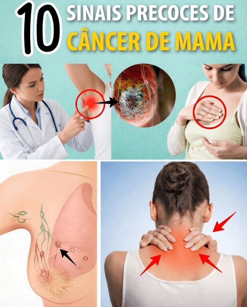 Muitas mulheres percebem pequenas mudanças nos seios e acabam ignorando, achando que são apenas variações hormonais, estresse ou irritações passageiras. Com a rotina corrida, é fácil pensar: “Isso vai passar sozinho”. No entanto, em alguns casos, esses sinais silenciosos são a forma do corpo avisar que algo mais sério pode estar acontecendo — como o câncer de mama em estágio inicial. Ignorá-los pode transformar um problema altamente tratável em um desafio muito maior. A boa notícia é que a detecção precoce aumenta drasticamente as chances de sucesso no tratamento. Continue lendo para conhecer os 10 principais sinais de alerta e entender por que prestar atenção ao seu corpo pode proteger sua vida.