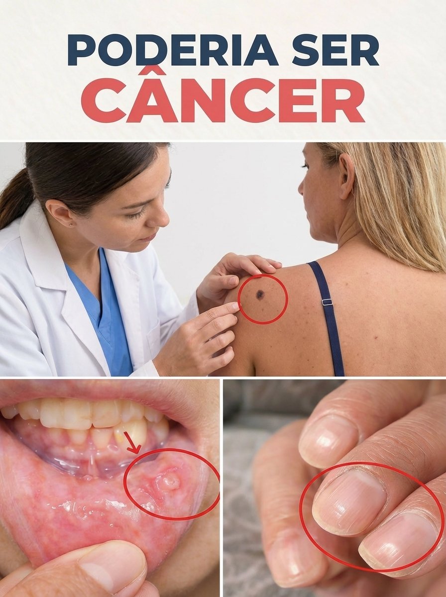 Manchas ou pintas que mudam de tamanho, forma ou cor devem ser avaliadas. - Feridas que não cicatrizam