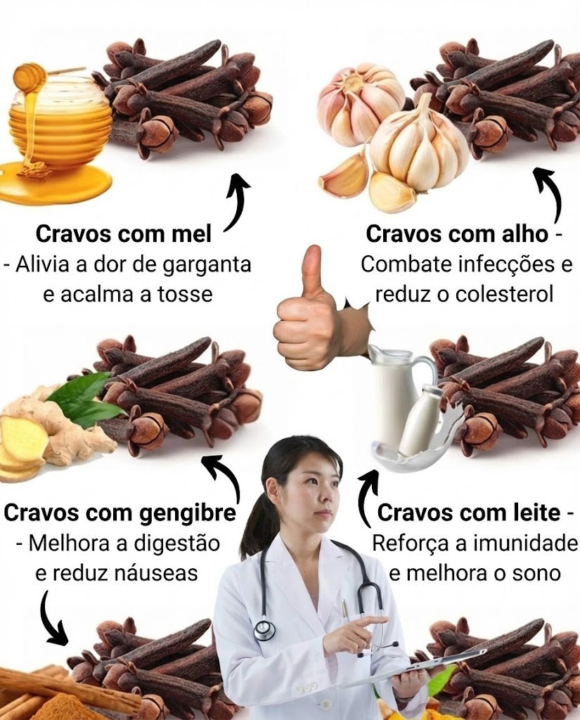 O cravo-da-índia, pequeno no tamanho mas gigante em benefícios, é um verdadeiro tesouro natural. Rico em antioxidantes, compostos anti-inflamatórios e óleos essenciais, ele apoia quase todos os sistemas do corpo. Veja agora 20 combinações eficazes de cravo com ingredientes naturais que fortalecem a sua saúde – e como preparar cada uma corretamente.