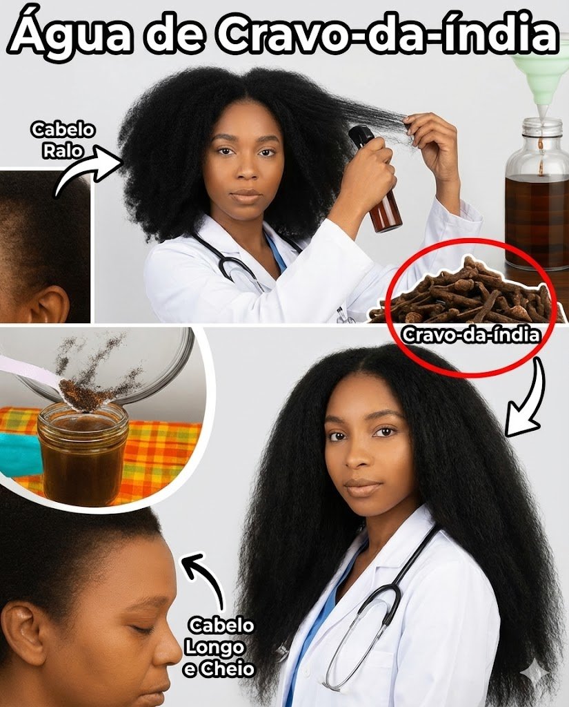 O cravo é rico em eugenol — um composto que fortalece o fio e reduz a quebra em até 50%. Menos quebra = cabelo que parece mais cheio mesmo antes do crescimento visível.