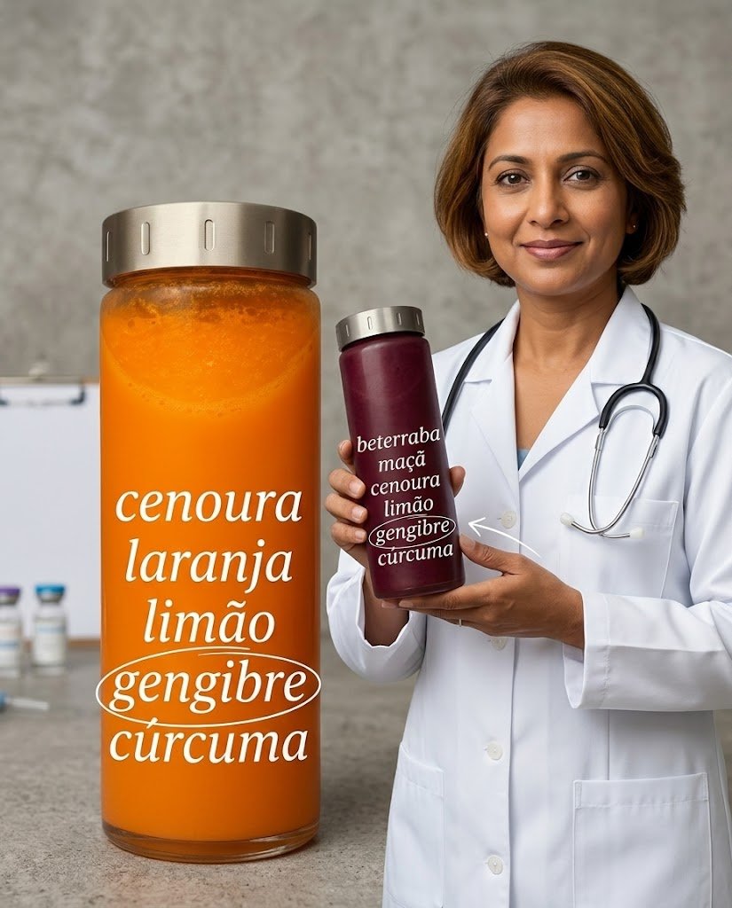 A boa notícia é que dois sucos naturais estão ganhando popularidade entre quem busca saúde de forma natural: Suco de Cenoura, Laranja, Limão, Gengibre e Cúrcuma e Suco de Beterraba, Maçã, Cenoura, Limão, Gengibre e Cúrcuma. Além de coloridos e refrescantes, eles são ricos em antioxidantes, vitaminas e compostos anti-inflamatórios que podem apoiar energia, digestão, imunidade e até a saúde da pele.