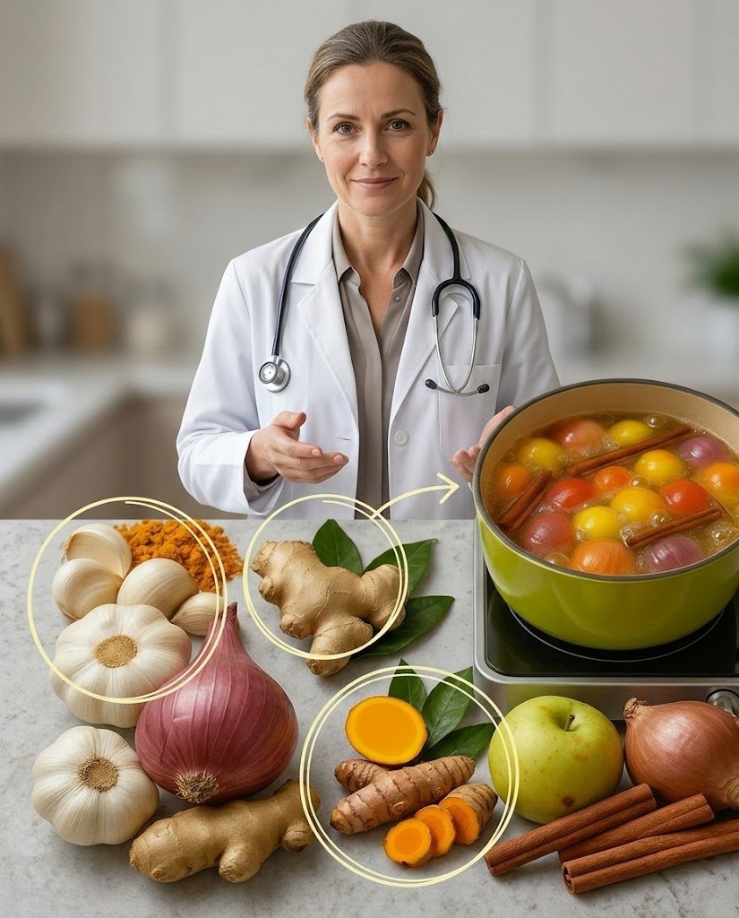 Durante séculos, chás de ervas têm sido utilizados como uma forma simples e eficaz de cuidar do corpo. Uma mistura especial que combina alho, cúrcuma, cebola, gengibre, canela e folhas de goiaba vem ganhando atenção por seus benefícios impressionantes. Cada ingrediente possui propriedades terapêuticas únicas, e juntos criam um tônico natural que pode ajudar a reduzir inflamações, fortalecer o sistema imunológico, apoiar a saúde do coração e melhorar a digestão.
