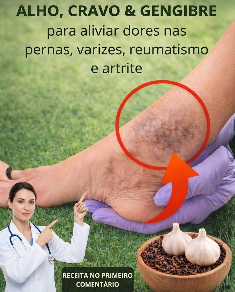 Você já sentiu aquelas pernas pesadas no final do dia? Varizes que incomodam, juntas rígidas ou dores que parecem não desaparecer? E se eu te dissesse que um remédio natural, simples e acessível, pode te ajudar a aliviar esses sintomas? Prepare-se para descobrir uma combinação poderosa de alho, cravo e gengibre — ingredientes usados há séculos em práticas tradicionais que podem apoiar sua circulação, reduzir inflamação e trazer alívio natural para suas pernas e articulações.