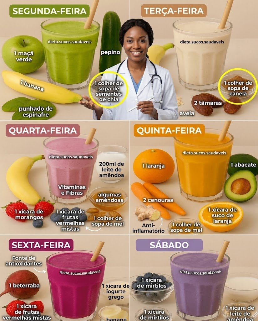 E se um smoothie fresco e saboroso pudesse transformar o seu dia desde a primeira hora da manhã? Imagine misturar ingredientes simples e naturais para criar bebidas nutritivas que ajudam a hidratar, aumentar a energia e apoiar o seu bem-estar ao longo da semana. Esse hábito simples, muitas vezes ignorado, está ganhando popularidade entre pessoas que desejam cuidar da saúde de forma natural. Quer descobrir como funciona esse plano de 6 dias e por que tantas pessoas estão experimentando? Continue lendo até o final.