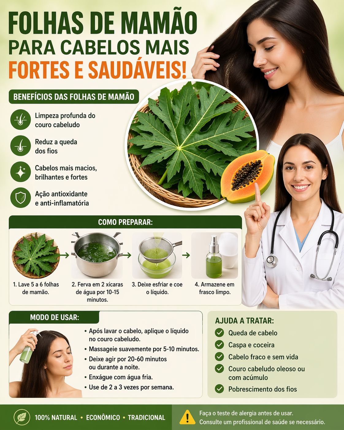 Explorar tratamentos naturais como as folhas de mamão pode ser uma forma simples e eficaz de cuidar do cabelo. O mais importante é observar como seu corpo reage e manter uma rotina consistente.