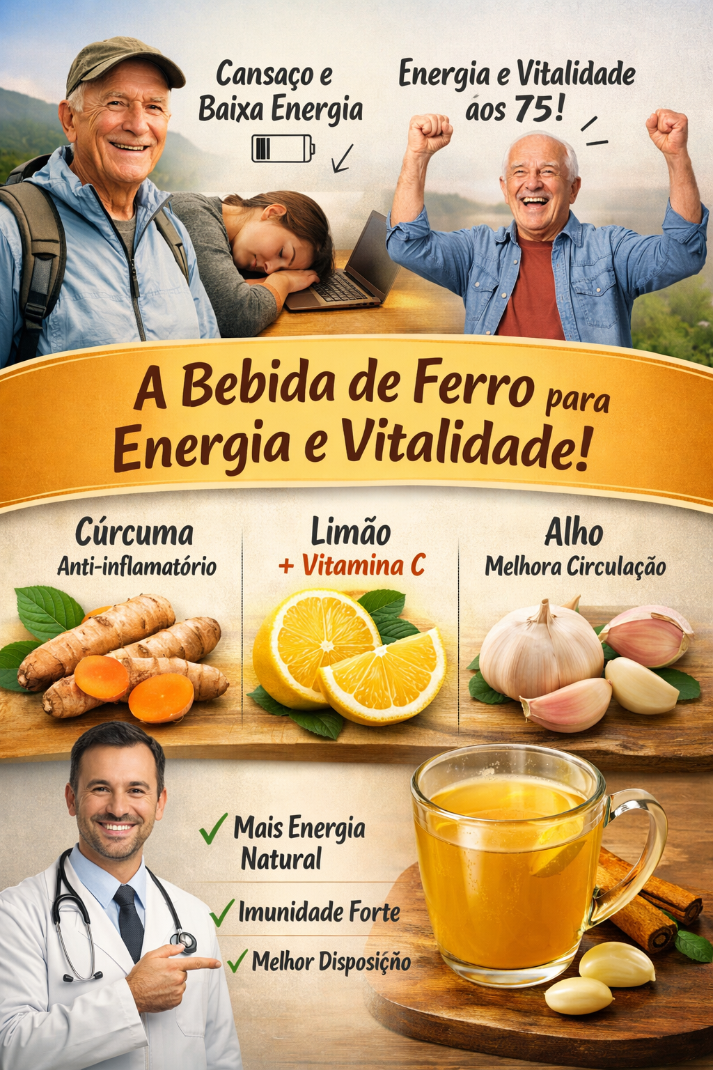 Meu avô de 75 anos prova isso todos os dias — ele ainda caminha longas distâncias, está lúcido, ativo, e com uma vitalidade que surpreende quem o conhece. O segredo está em um ritual noturno simples que ele chama de sua “Bebida de Ferro”. Continue lendo para descobrir essa mistura natural e fácil de fazer que tem transformado sua energia diária.
