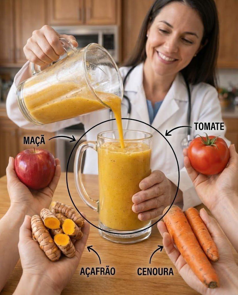 Mas há uma boa notícia: a natureza oferece ferramentas poderosas para nutrir seus olhos e sua mente de dentro para fora. Este smoothie refrescante combina maçã, cenoura, tomate e cúrcuma — ingredientes ricos em vitaminas, antioxidantes e compostos anti‑inflamatórios que podem apoiar a saúde da retina e a clareza cognitiva quando integrados a uma rotina saudável. Continue lendo para descobrir como essa bebida simples pode se tornar sua aliada diária… e uma dica surpreendente no final para maximizar seus benefícios.