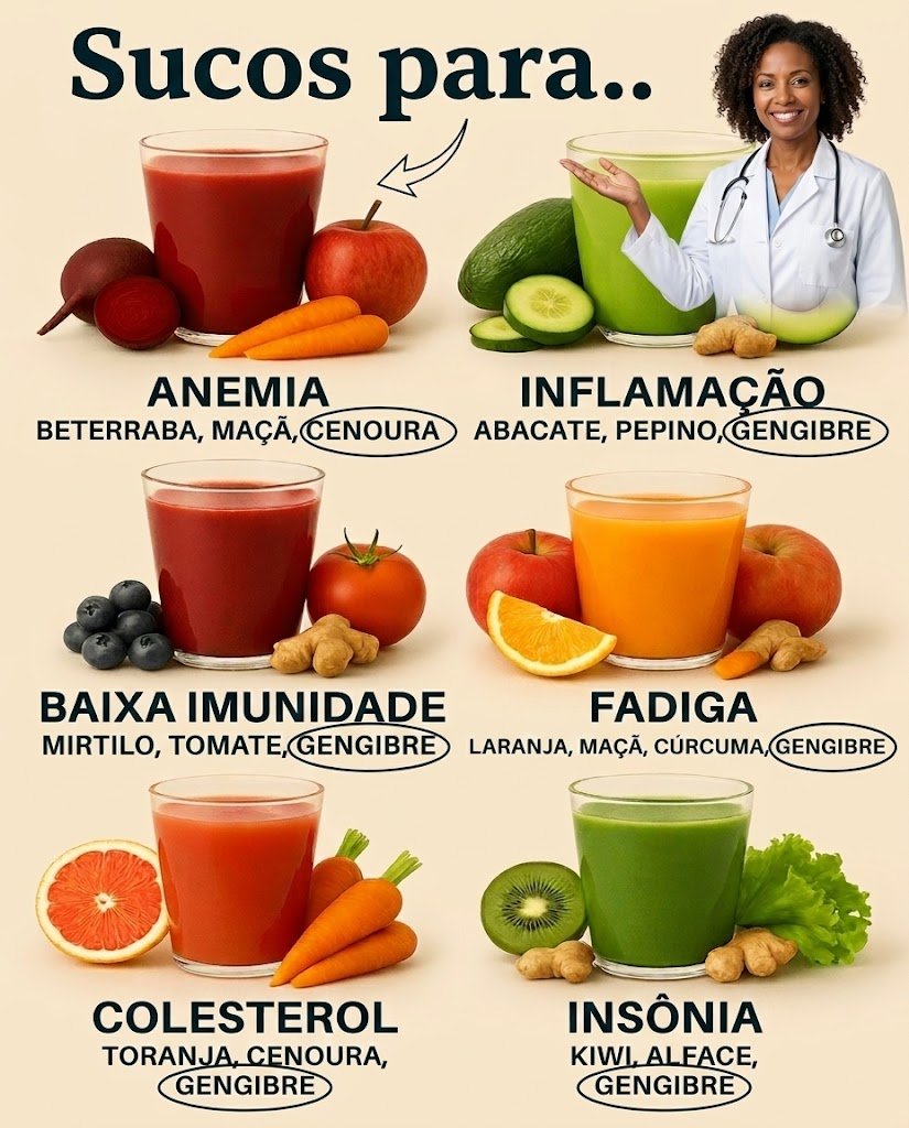 Será que um simples suco pode melhorar anemia, inflamação, cansaço ou insônia? Embora não substituam tratamentos médicos, os sucos naturais oferecem nutrientes valiosos que ajudam o corpo a funcionar melhor.