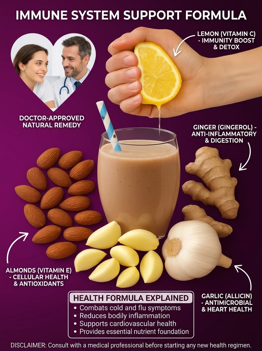 Now imagine starting your day with a smooth, creamy, slightly spicy drink that gently awakens your body and sustains your energy for hours. This powerful blend combines four natural ingredients: almonds, fresh ginger, garlic, and lemon—each working together to support your body’s natural vitality.